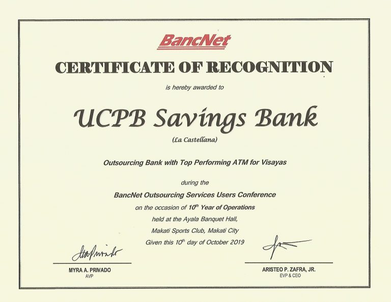 As a validation of the President and CEO’s statement, UCPB Savings Bank (USB) bagged 3 national awards and 3 branch awards during the recently concluded BancNet Outsourcing Services Users